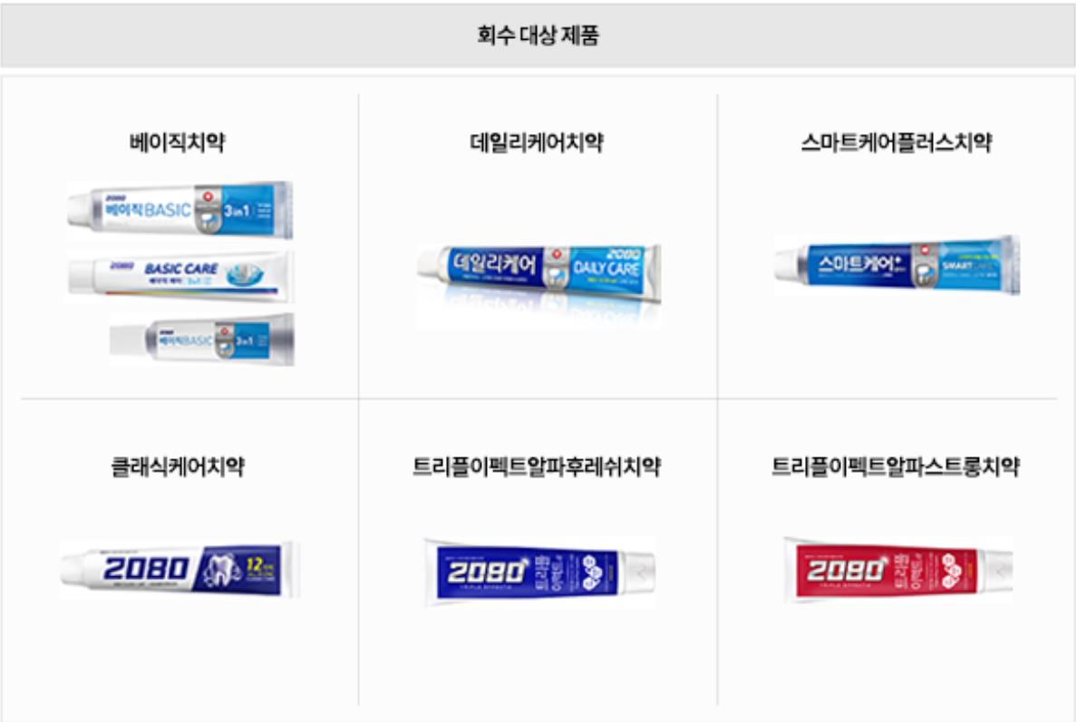 이번 자발적 회수 대상은 모두 2080 브랜드 치약으로,